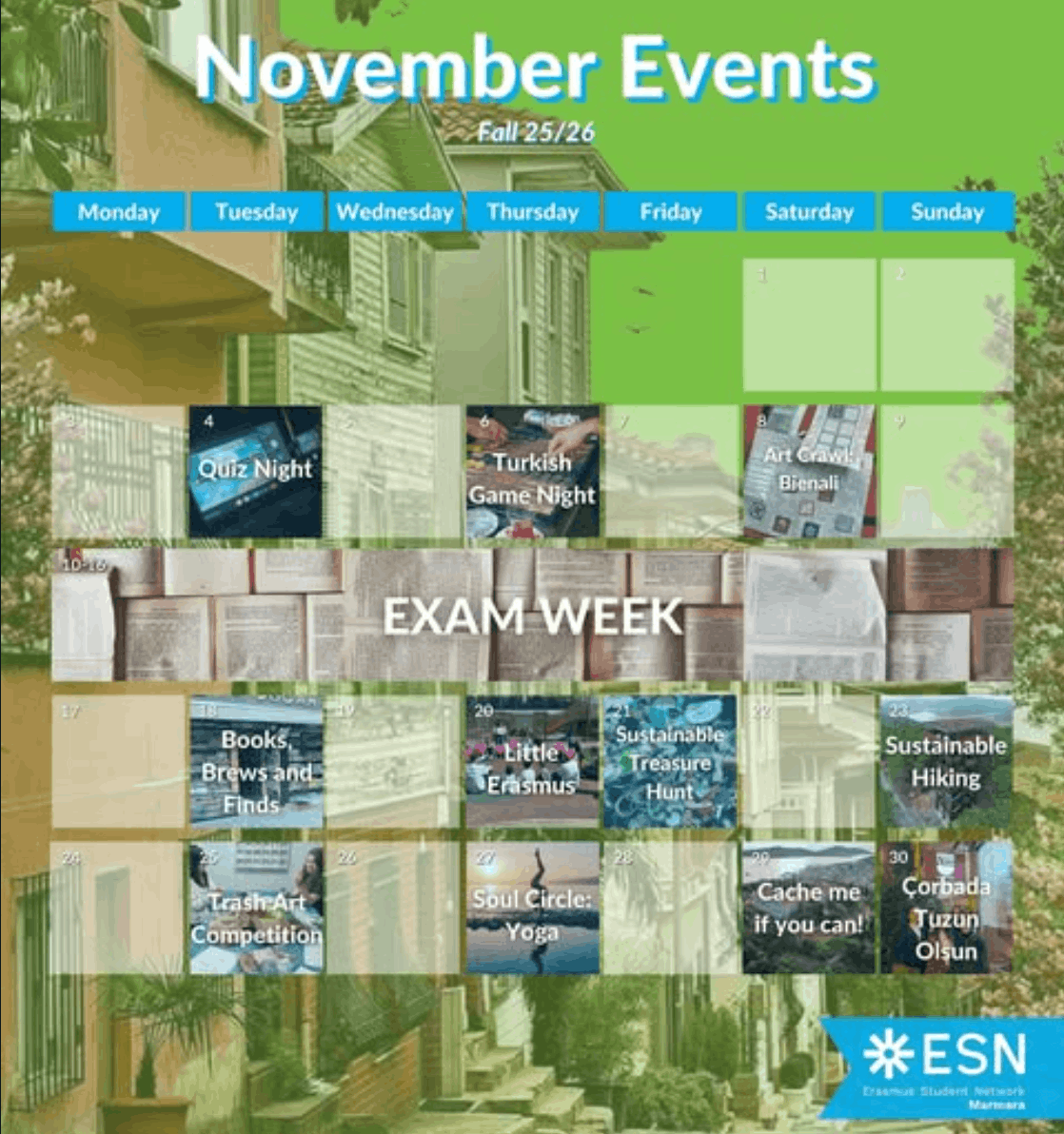 Erasmus Student Network (ESN) is a non-profit international student organisation. Our mission is to represent international students, thus provide opportunities for cultural understanding and self-development under the principle of Students Helping Students.